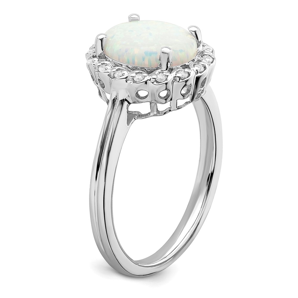 14k White Gold 10x8mm Oval Lab-Created Opal and 1/15 carat Diamond Halo Ring