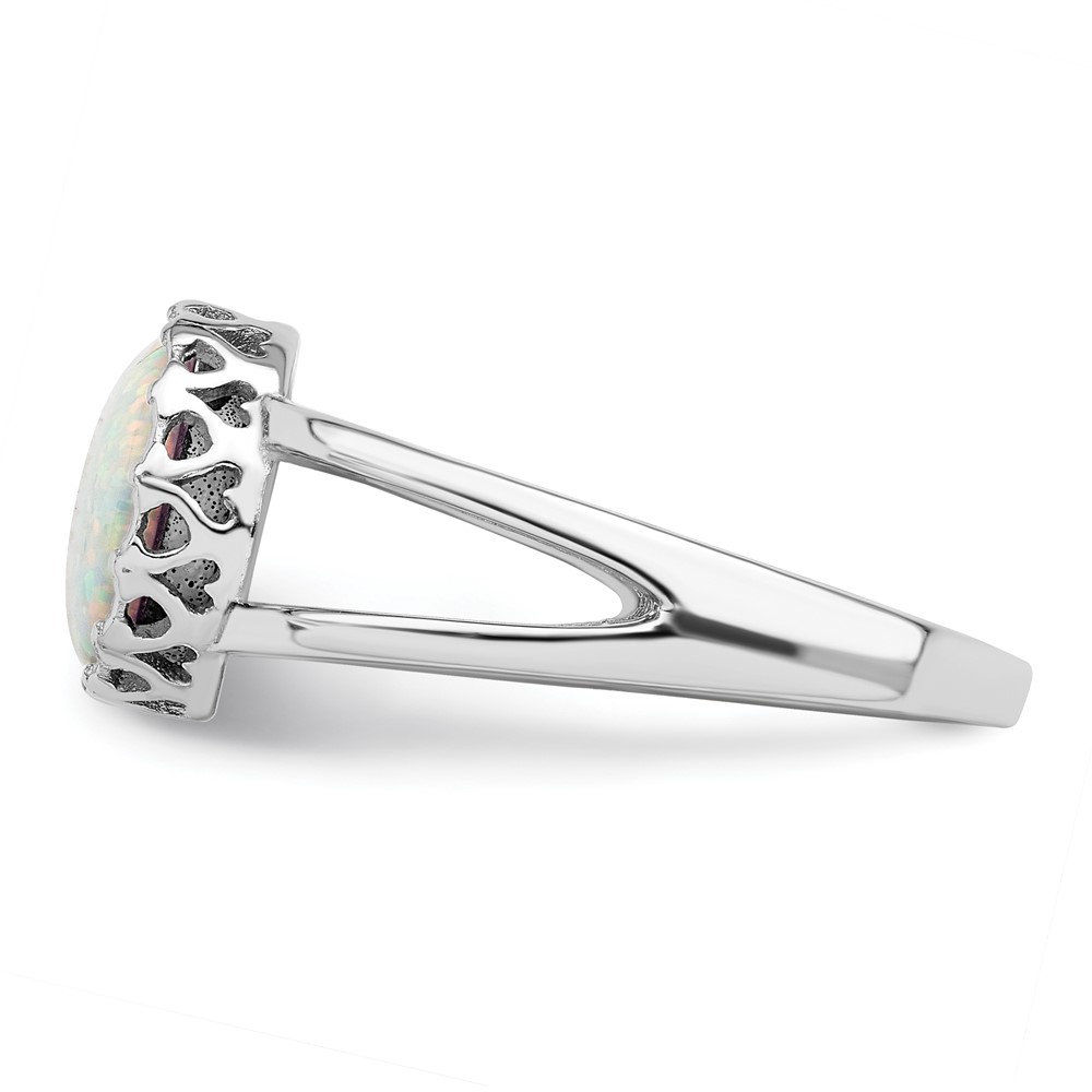 Sterling Silver Rhodium-plated Round White Created Opal Inlay Ring