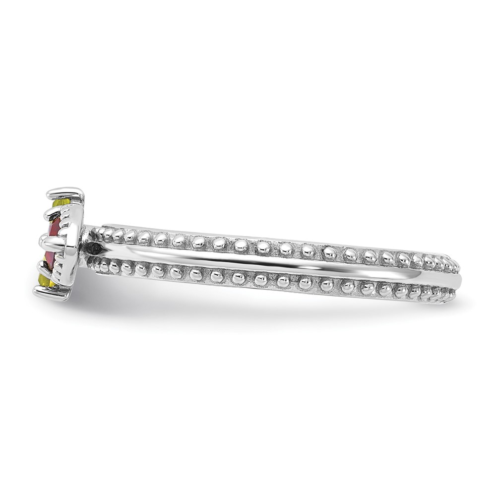 Sterling Silver Stackable Expressions Gemstone+Peridot Flower Rings