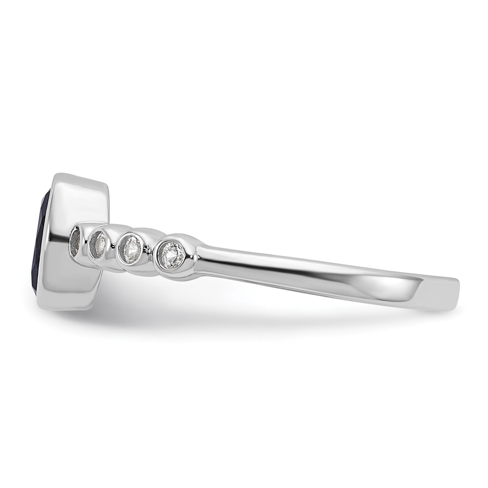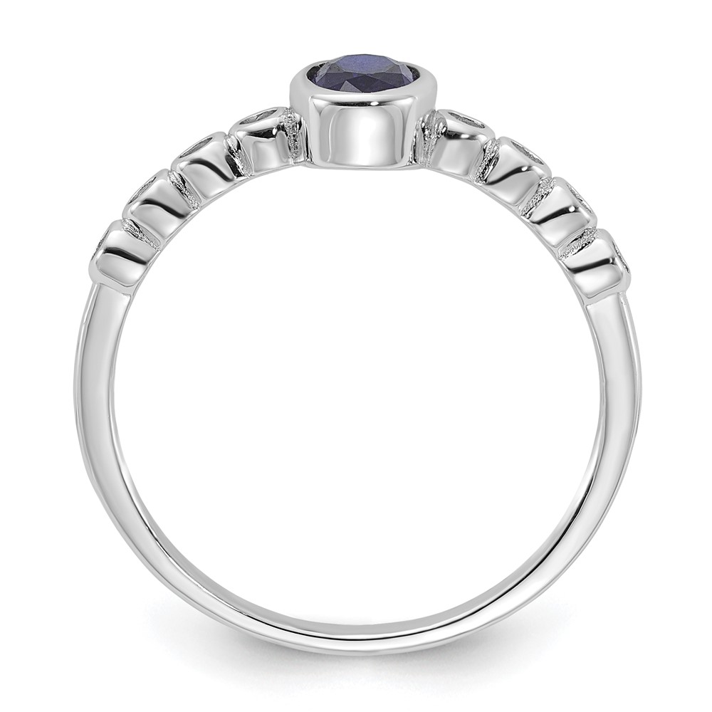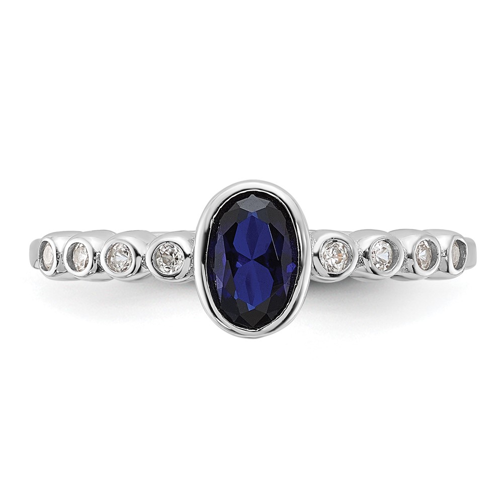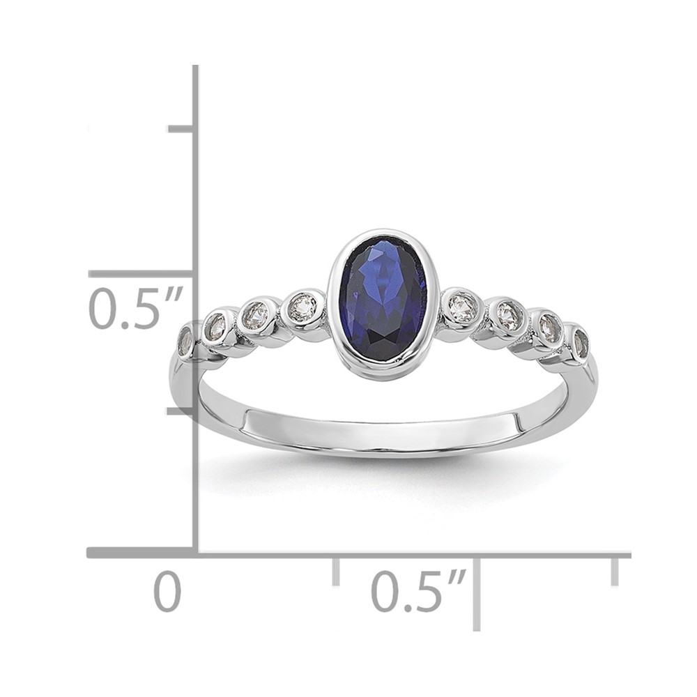 SS Rh-plated .01Created White Sapphire .56Created Blue Spinel Ring