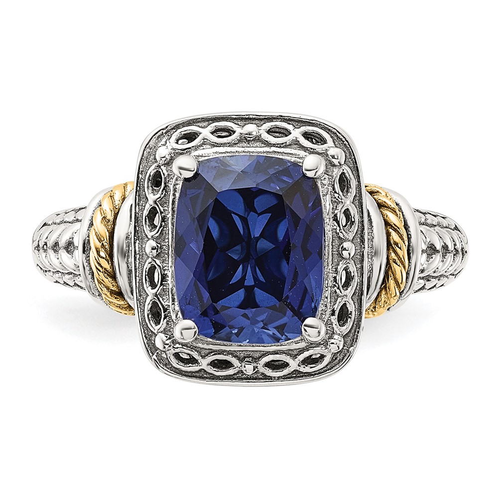 Shey Couture Sterling Silver with 14k Antiqued Lab Created Sapphire Ring