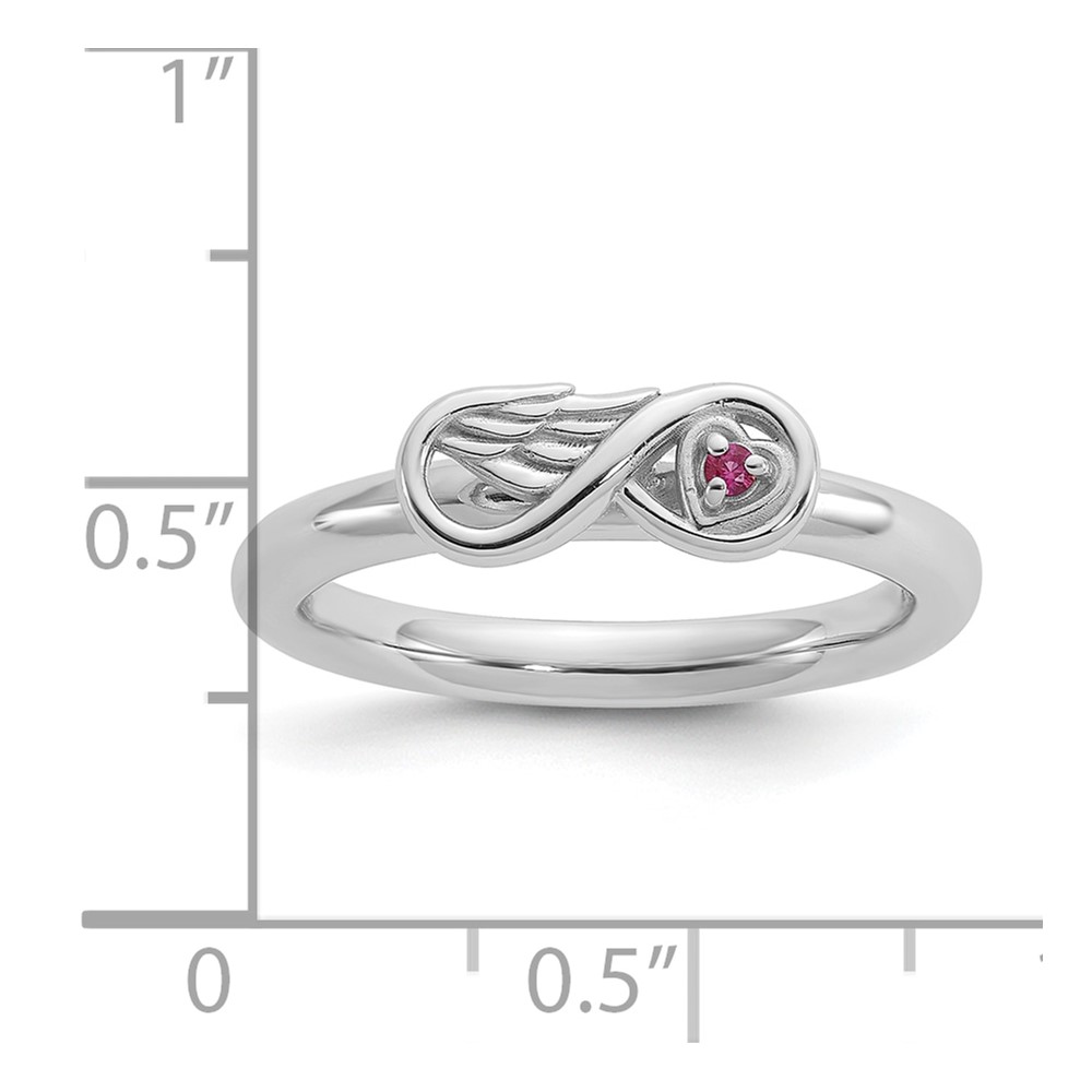 Sterling Silver Stackable Expressions Rh-plated Cr.Ruby Infinity/Wing Ring