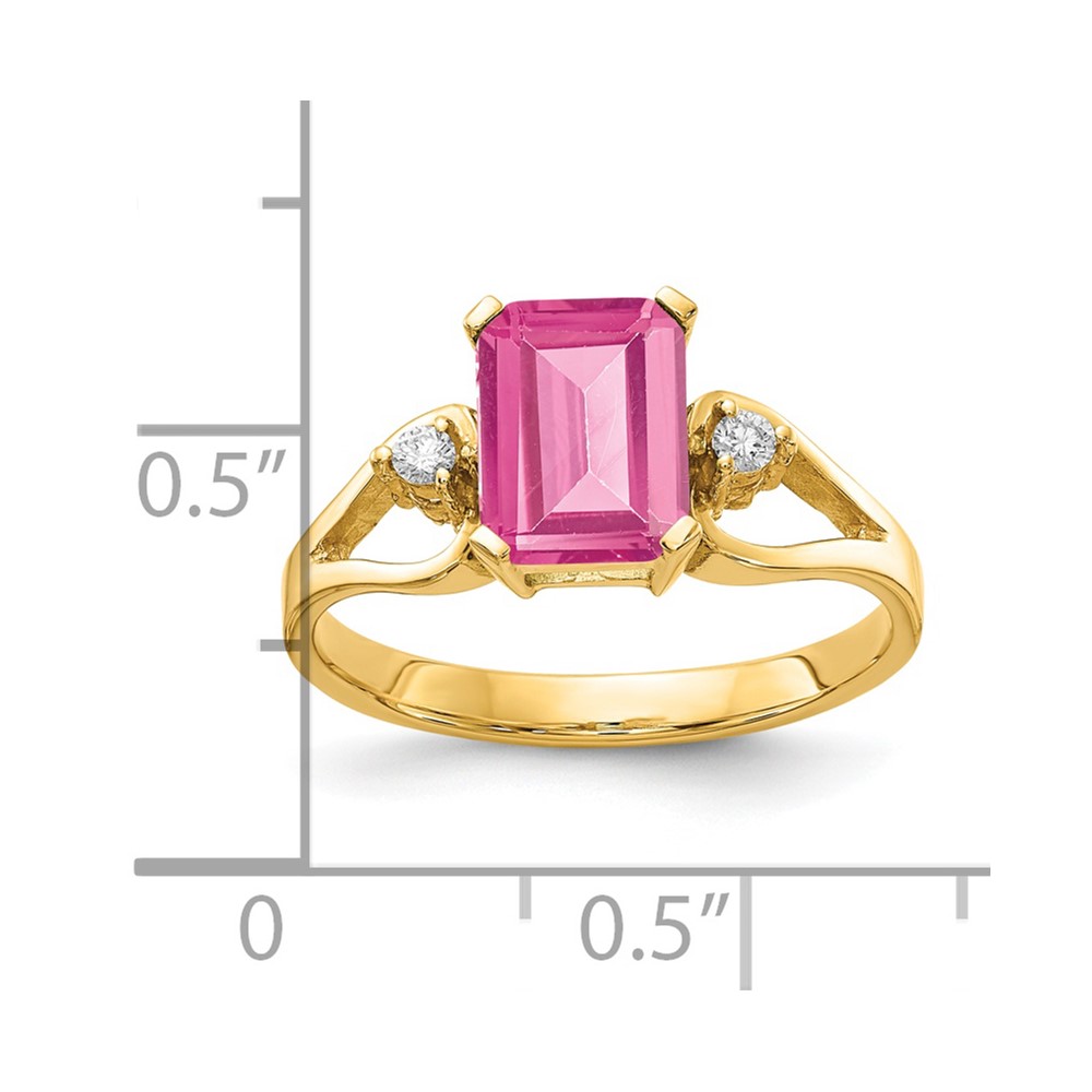 14k 8x6mm Emerald Cut Pink Tourmaline AA Diamond ring