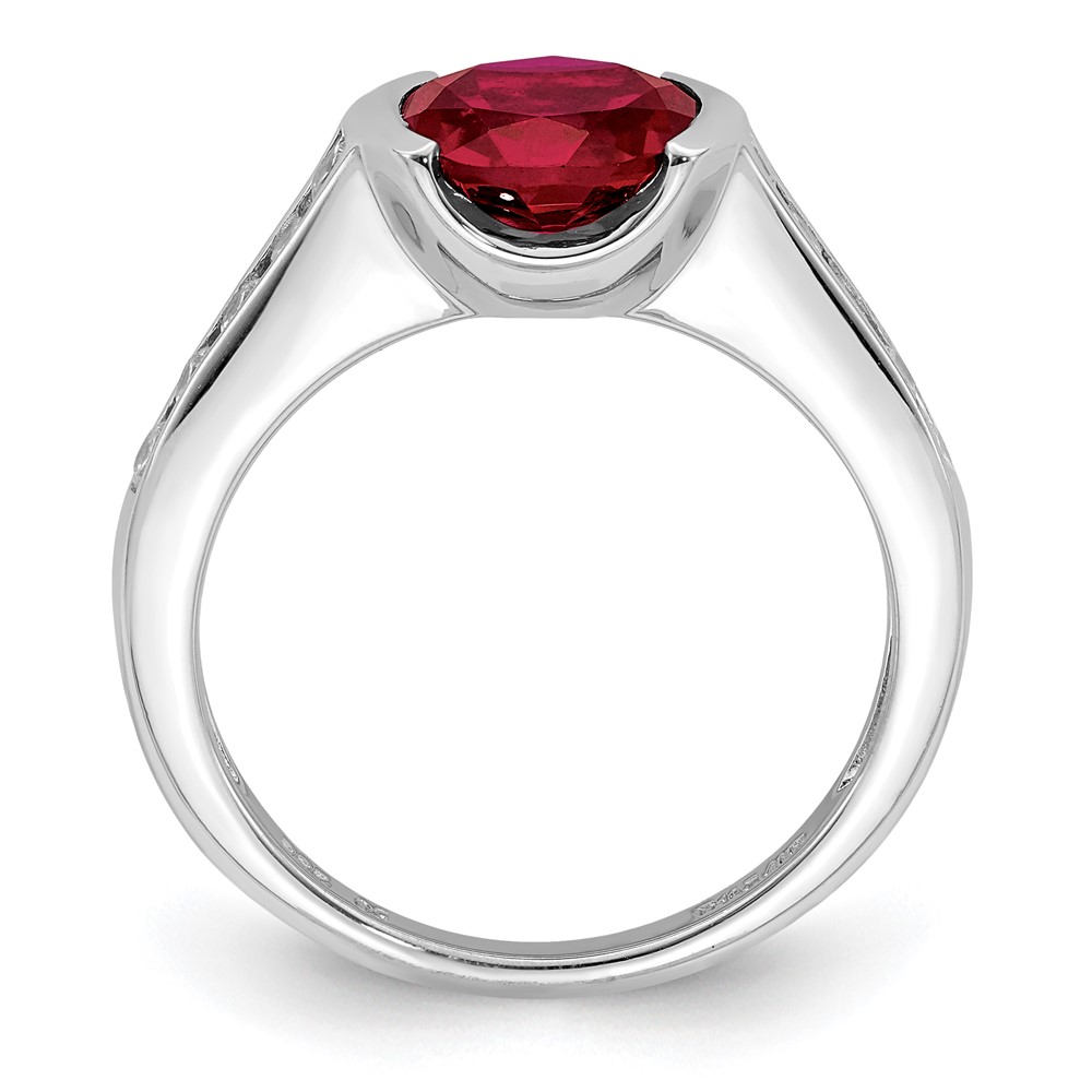Sterling Silver Rhodium-plated Synthetic Ruby and CZ Bezel Ring