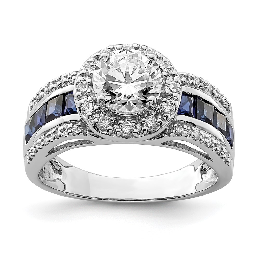 Sterling Silver Rhodium-plated CZ and Lab Created Sapphire Ring