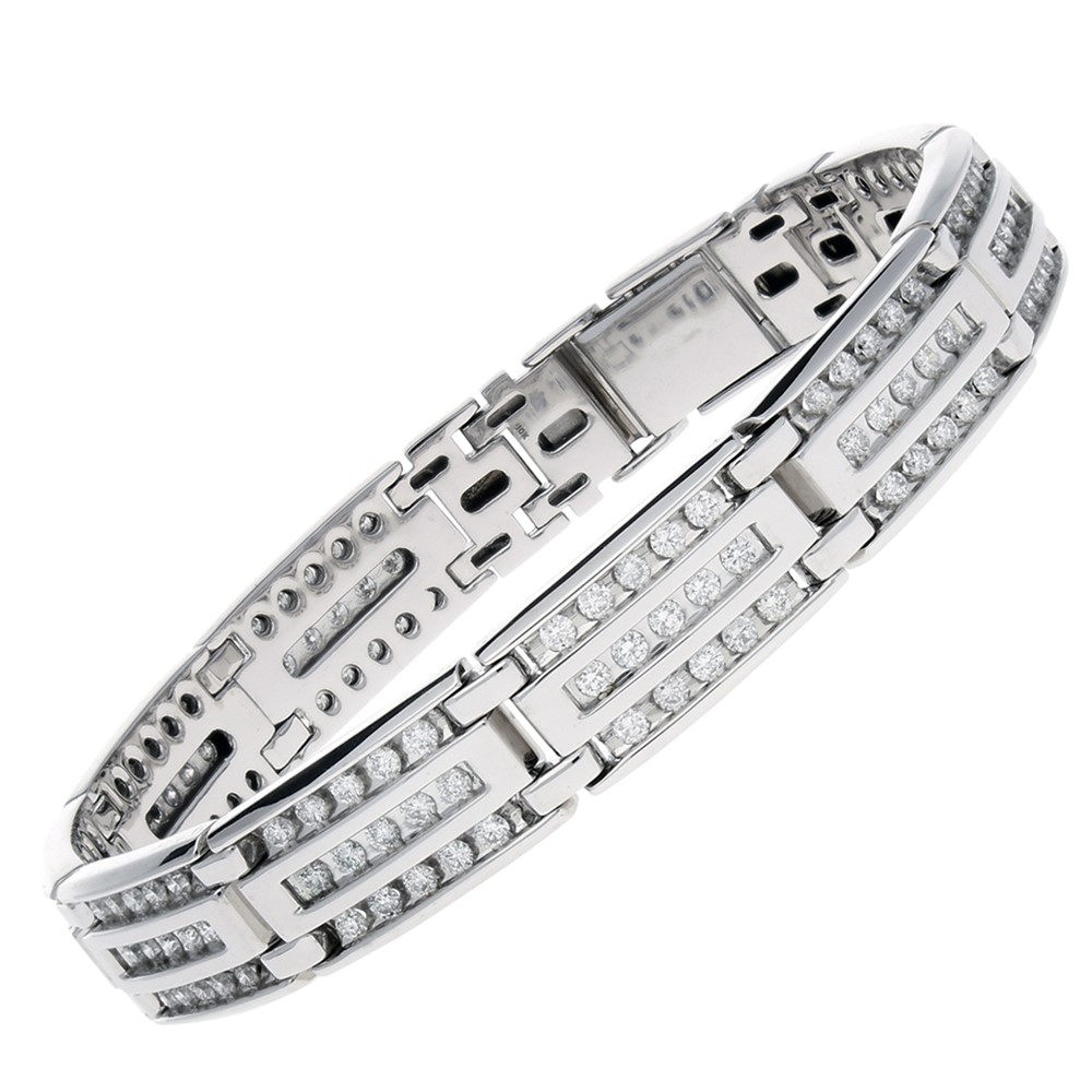 Men's White Gold Diamond Link Bracelet with Box Clasp Mounting