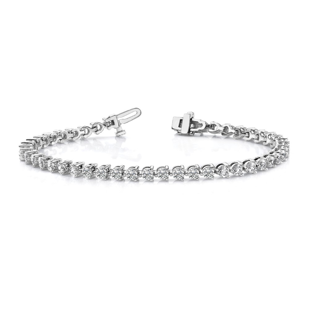 14k White Gold Holds 2.4 carat 59-2.2mm Round Diamond 3-prong 7 inch Tennis Bracelet Mounting