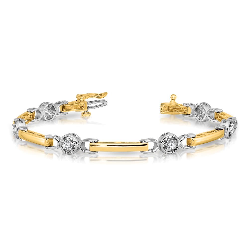 14k Two-tone Holds 1/2 carat 6-2.75mm Round Diamond Bar 7 inch Tennis Bracelet Mounting
