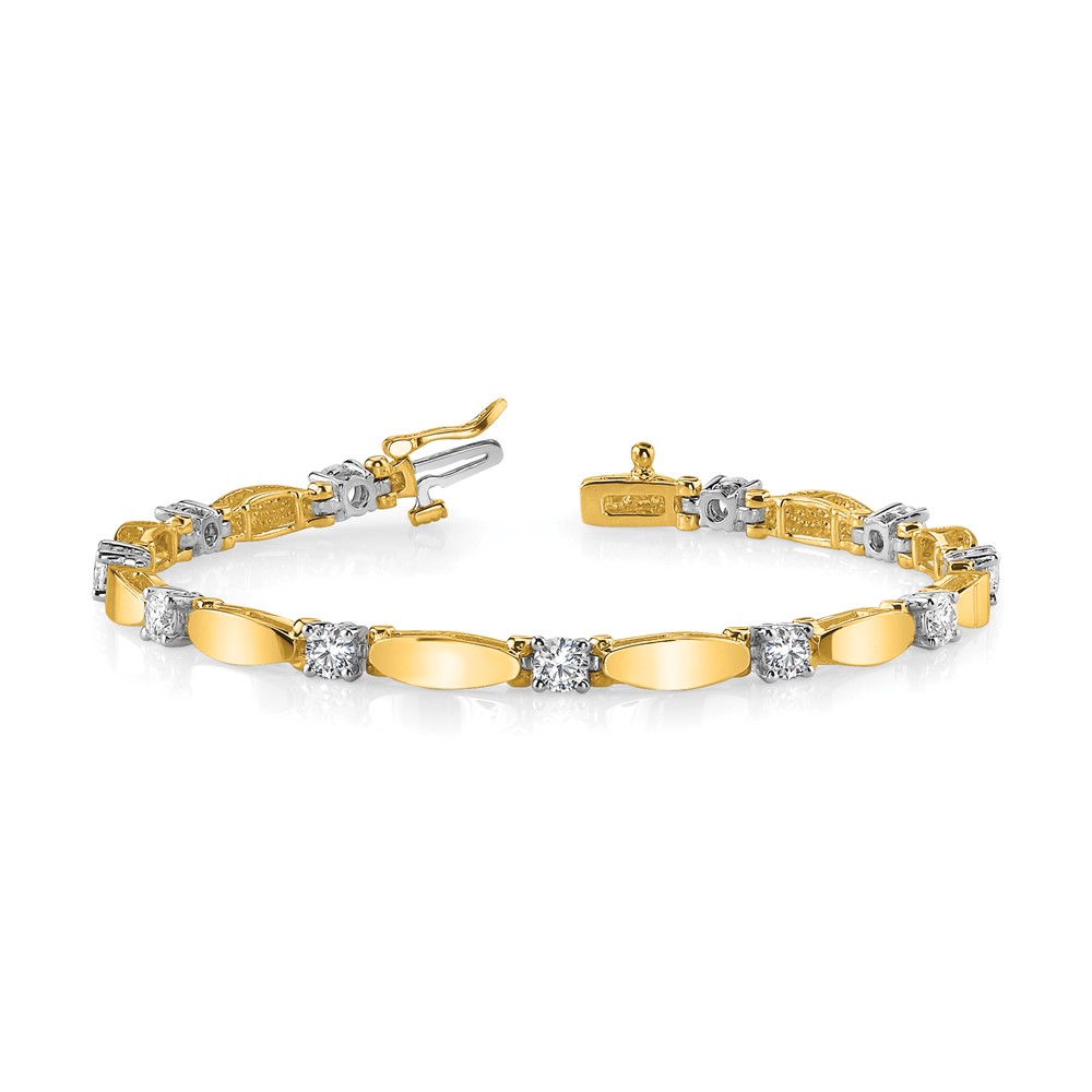 14k Two-tone Holds 1.13 carat 11-3.0mm Round Diamond Curved Bar Link 7 inch Tennis Bracelet Mounting