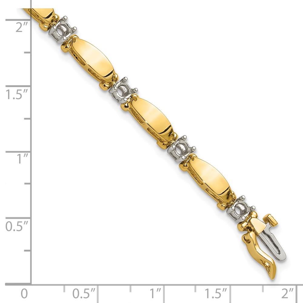 14k Two-tone Holds 1.87 carat 11-3.5mm Round Diamond Curved Bar Link 7 inch Tennis Bracelet Mounting
