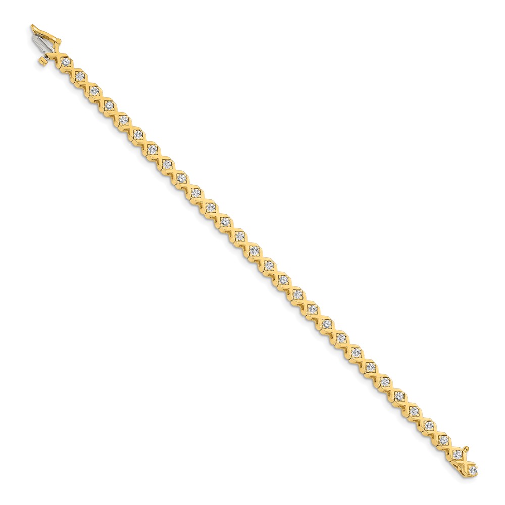 14k Holds 2 carat 29-2.6mm Round Diamond 4-prong X-design 7 inch Tennis Bracelet Mounting