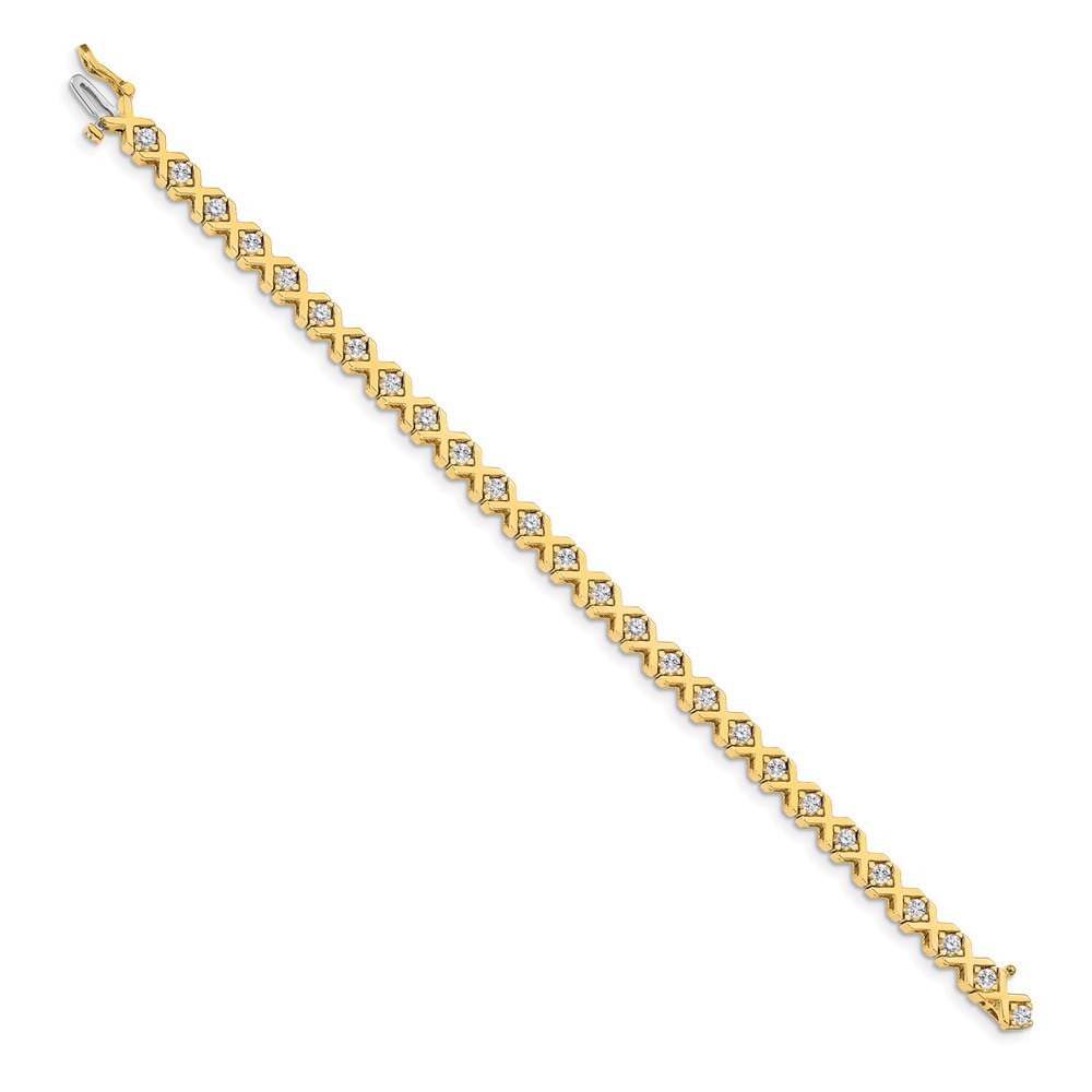 14k Holds 2.4 carat 26-2.9mm Round Diamond 4-prong X-design 7 inch Tennis Bracelet Mounting