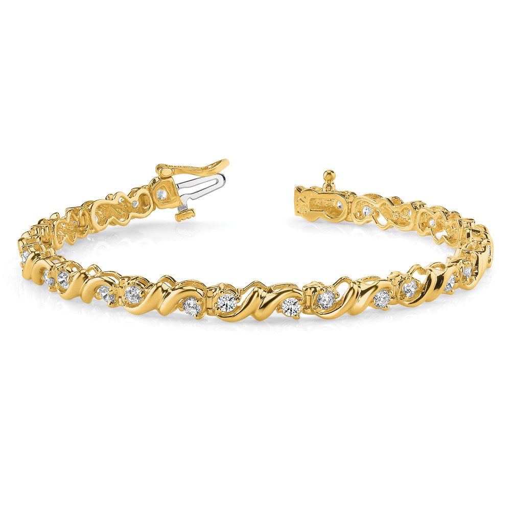 14k Holds 1.45 carat 28-2.4mm Round Diamond Fancy Swirl 7 inch Tennis Bracelet Mounting