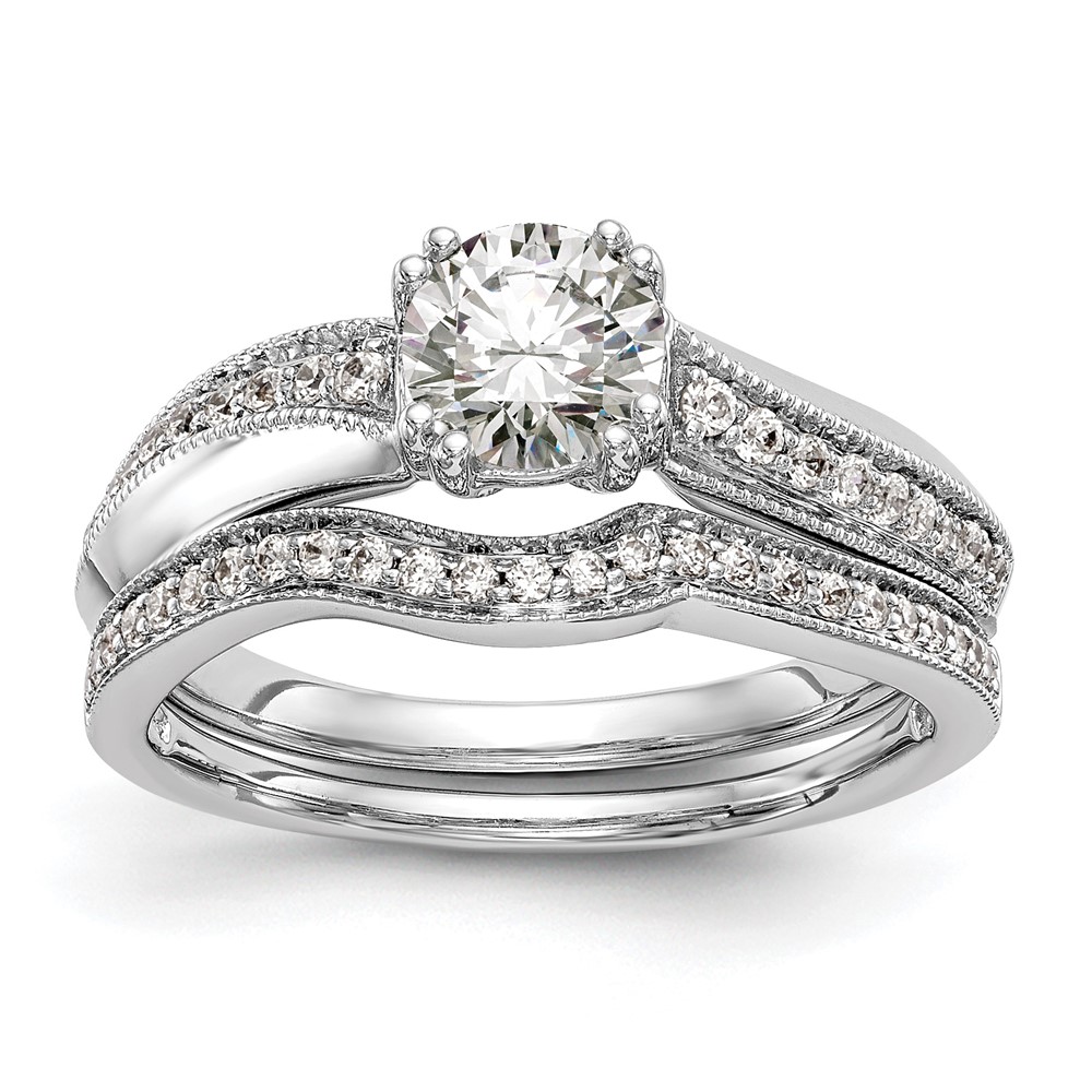 14k White Gold Diamond Round Semi-mount By-Pass Engagement Ring