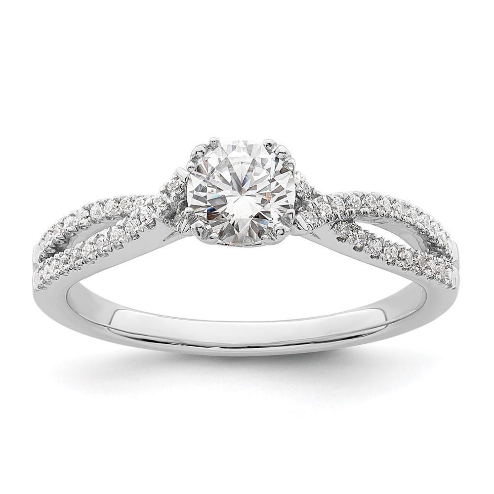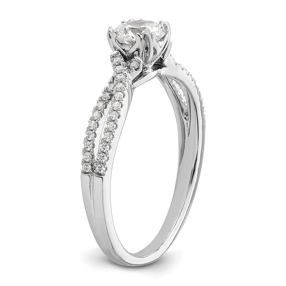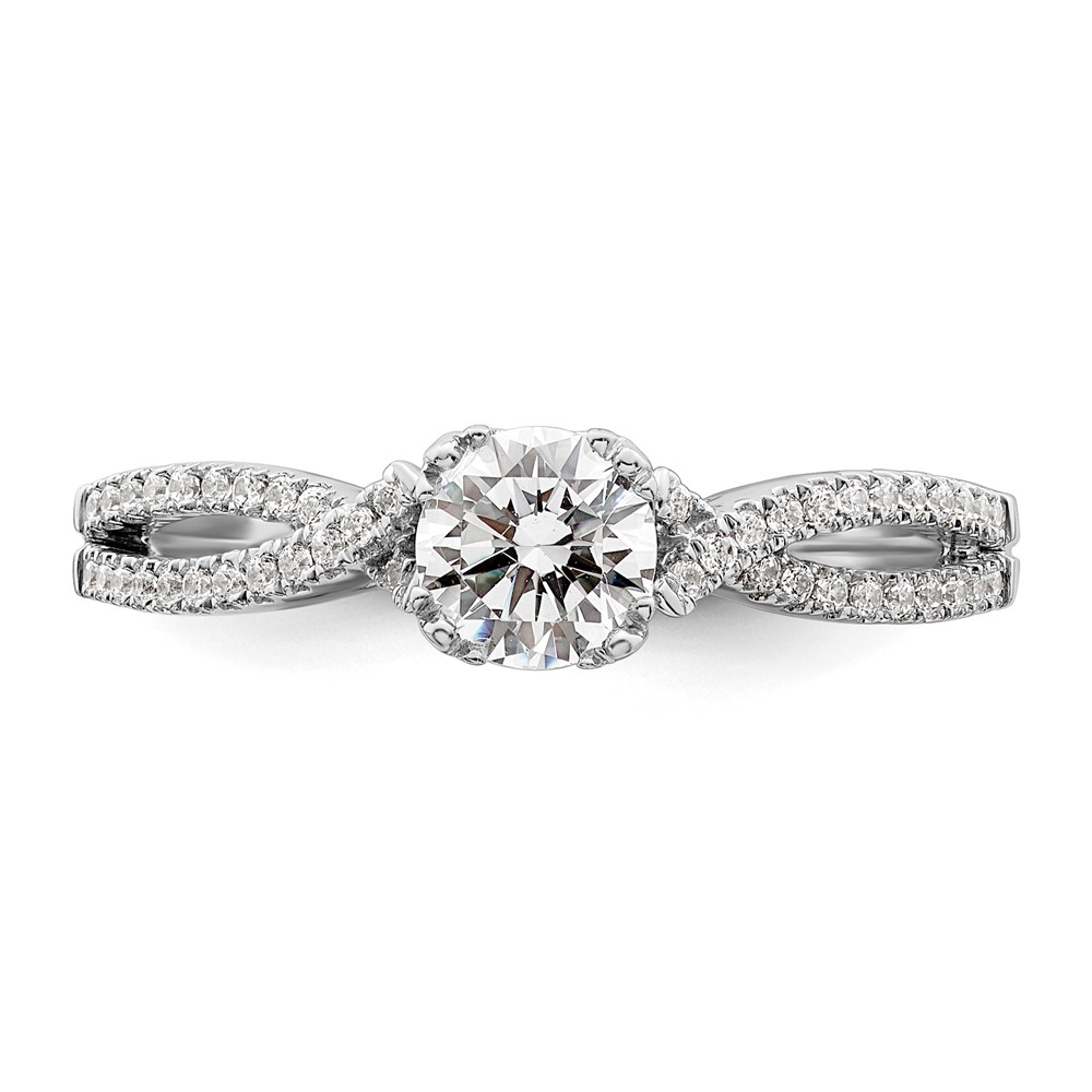 14k White Gold Criss-Cross (Holds 1/2 carat (5.2mm) Round Center) 1/6 carat Diamond Semi-Mount Engagement Ring