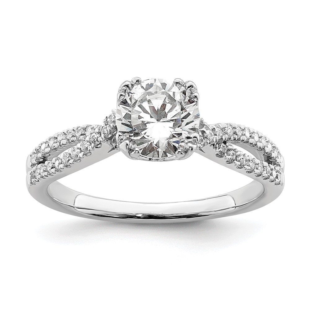 14k White Gold Criss-Cross (Holds 1 carat (6.5mm) Round Center) 1/5 carat Diamond Semi-Mount Engagement Ring