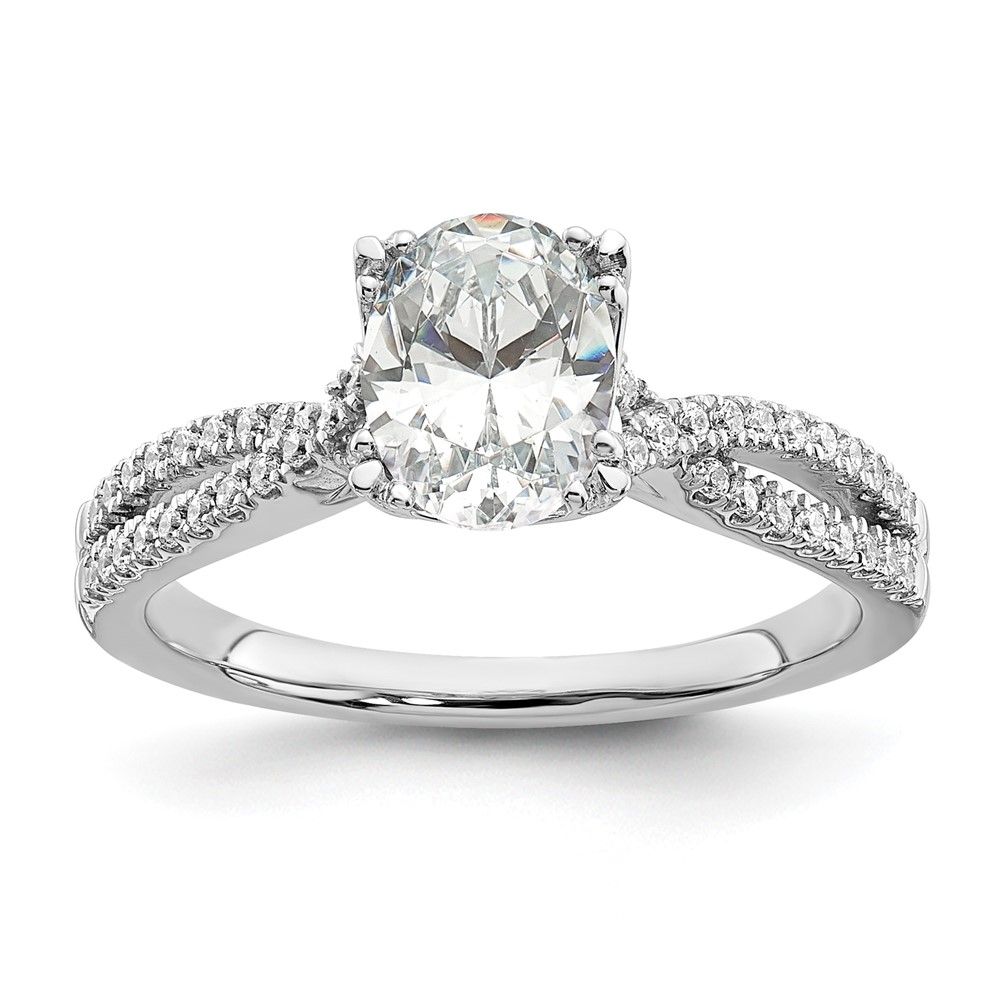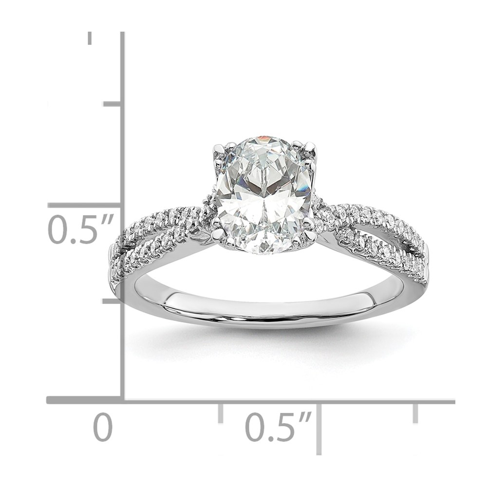 14k White Gold Criss-Cross (Holds 1 carat (8.00x6.1mm) Oval Center) 1/5 carat Diamond Semi-Mount Engagement Ring