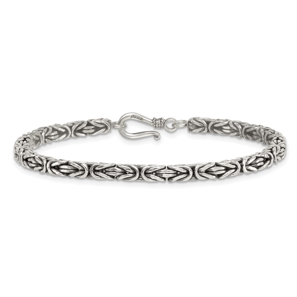 Sterling Silver Antiqued 4.0mm Byzantine 8 Inch Hook Clasp Mens Bracelet