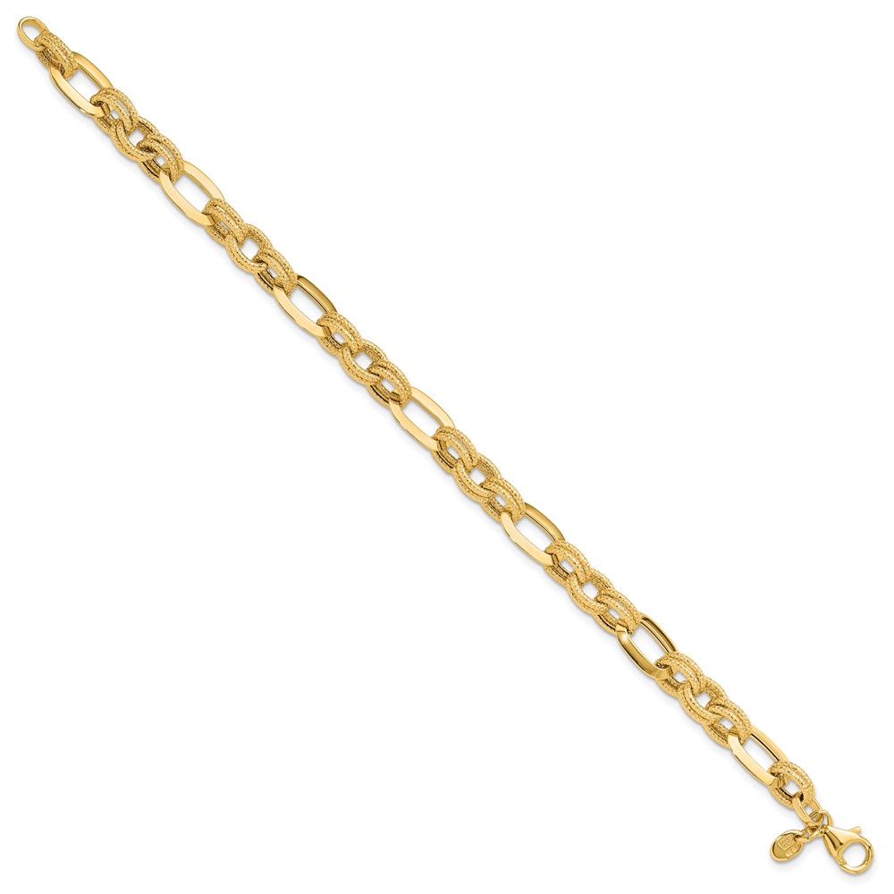 14K Polished and Textured 7.8mm Fancy Link 7.5 inch Bracelet