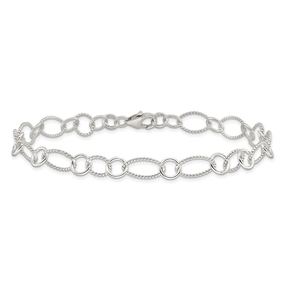 Sterling Silver Fancy Link Anklet