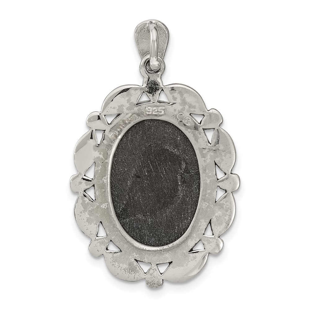 Sterling Silver Antiqued Marcasite Black Agate & MOP White Cameo Pendant