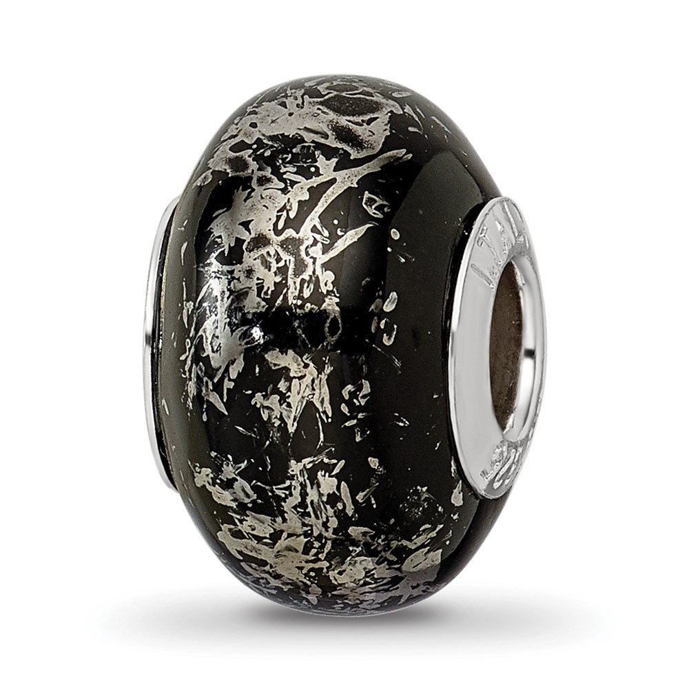 Sterling Silver Reflections Black w/Platinum Foil Ceramic Bead