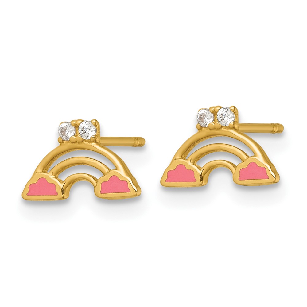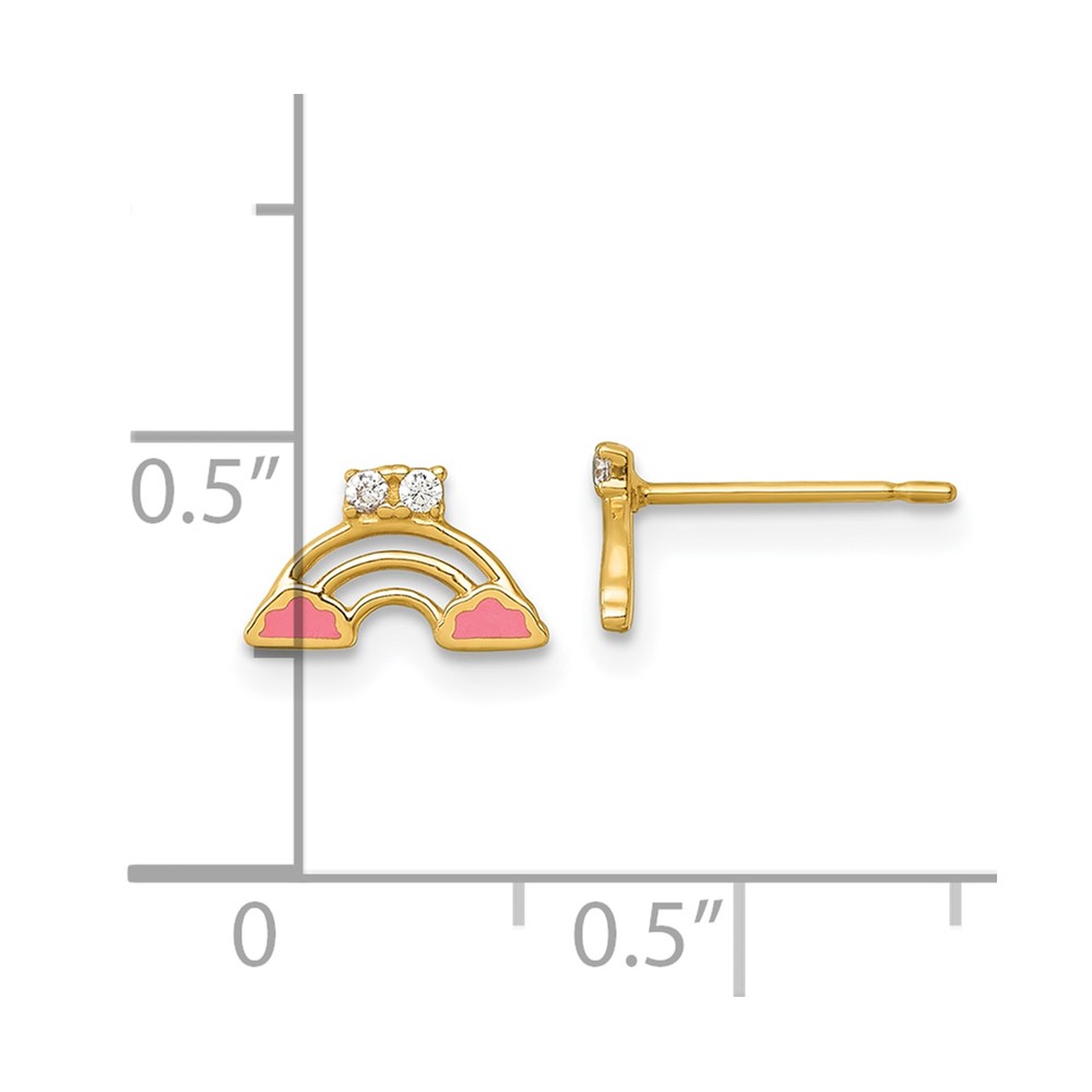 14k Madi K Polished Pink Enamel and CZ Rainbow Childrens Post Earrings