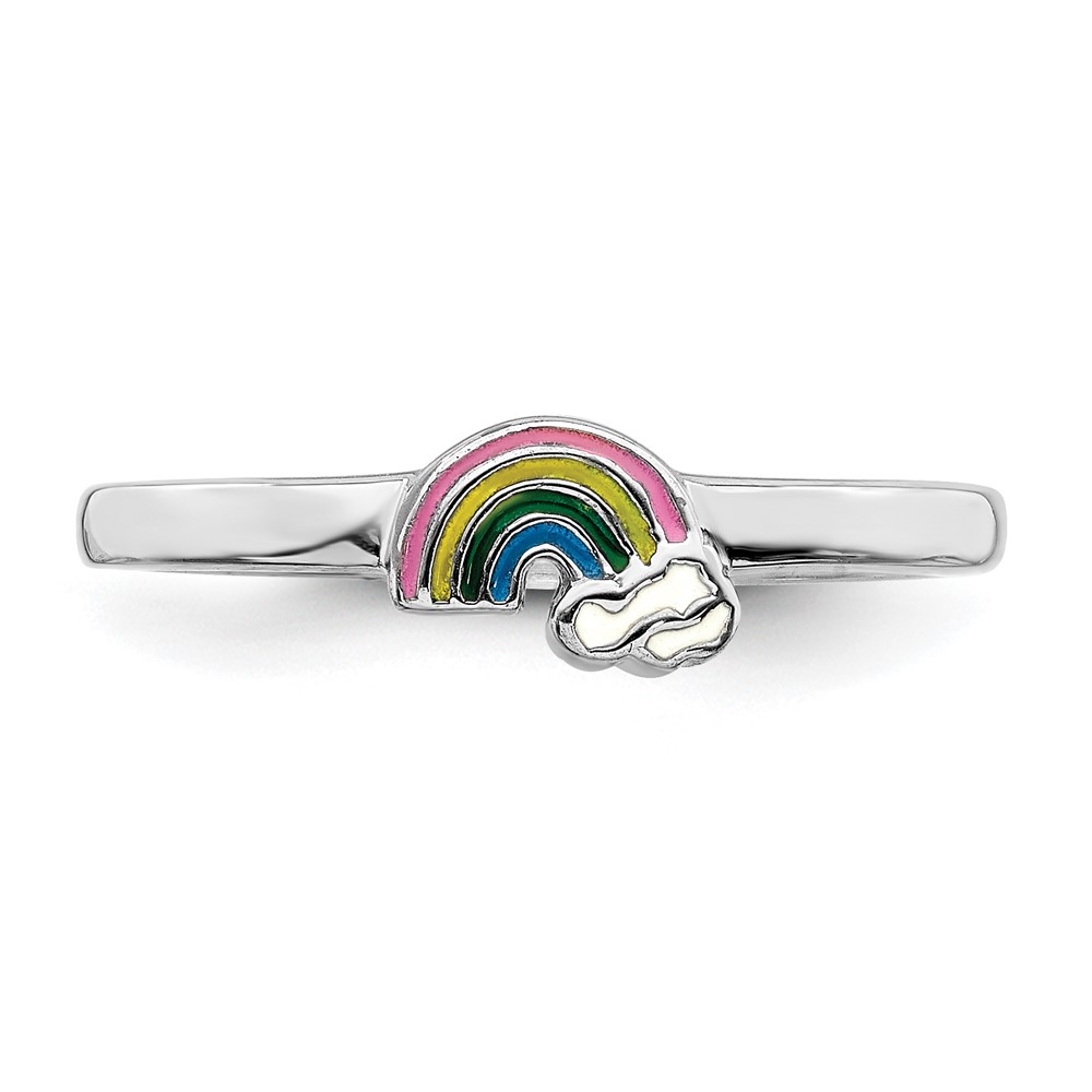 Sterling Silver RH-plated Multi-color Enameled Rainbow Children's Ring