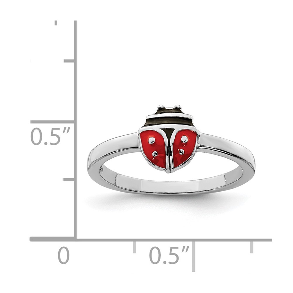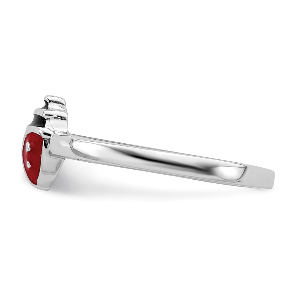 Sterling Silver Rhod-plated Polished & Enameled Ladybug Children's Ring
