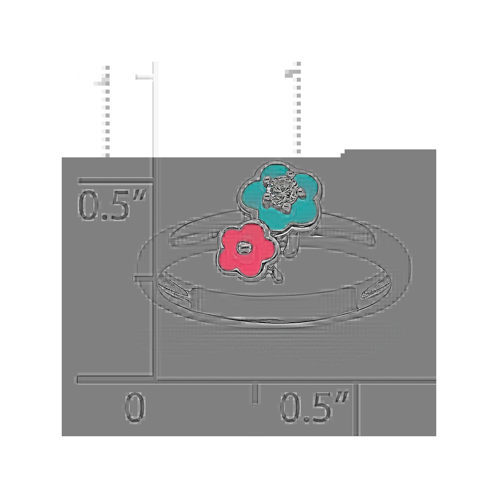 Sterling Silver RH-plated Blue/Pink Enameled & CZ Floral Children's Ring