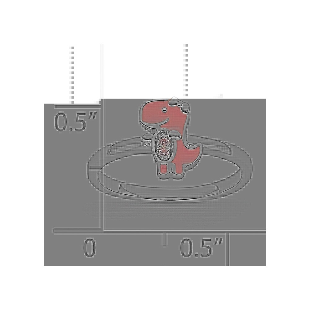 Sterling Silver Rhodium-plated Pink Enamel & CZ Dinosaur Children's Ring