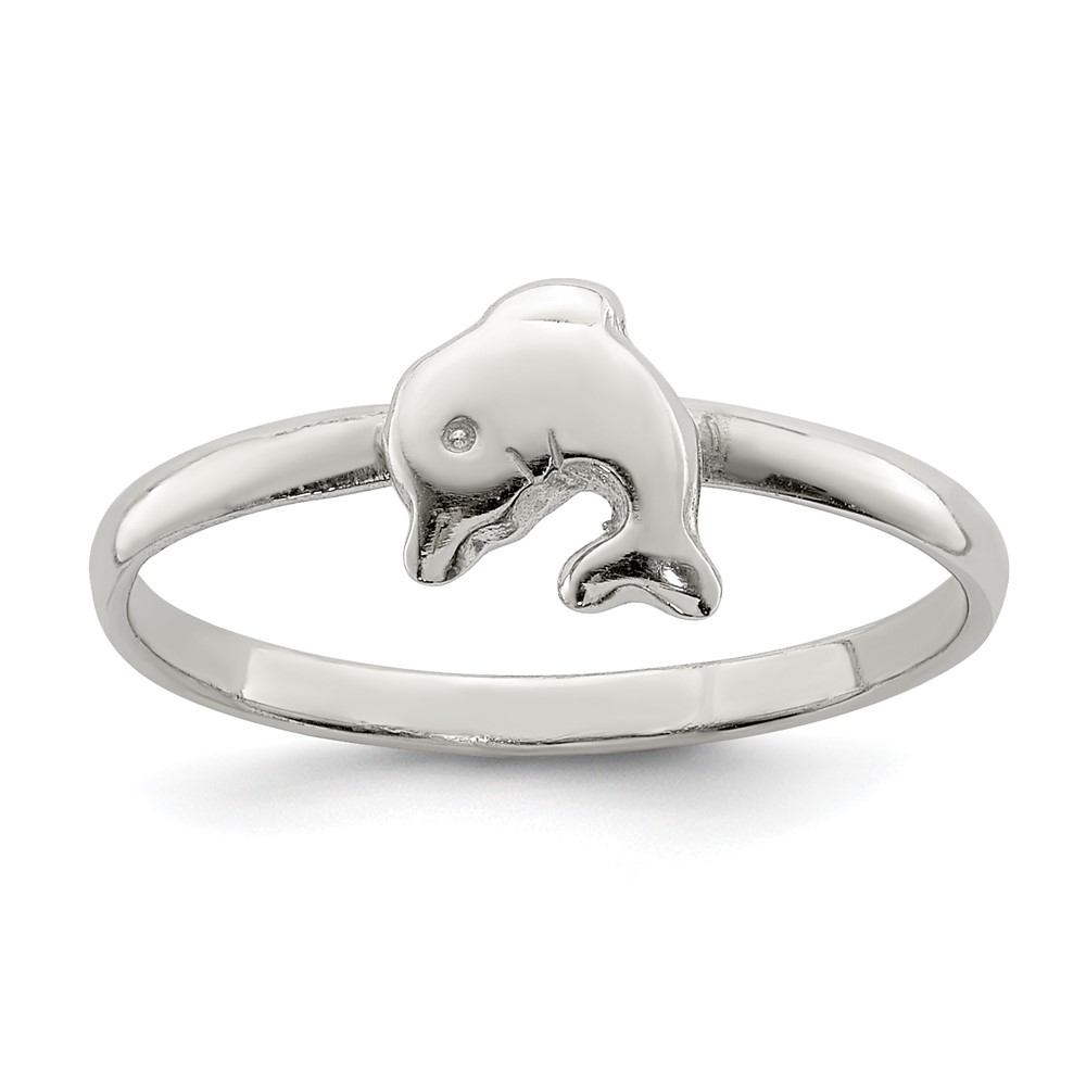 Sterling Silver Rhodium-plated Polished Dolphin Children's Ring