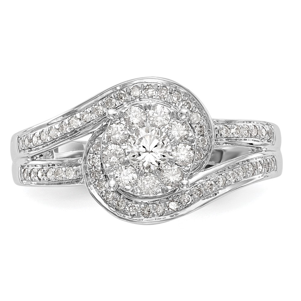 14k White Gold 1 carat Lab Grown Diamond VS/SI+ G+ Complete Cluster Engagement Ring