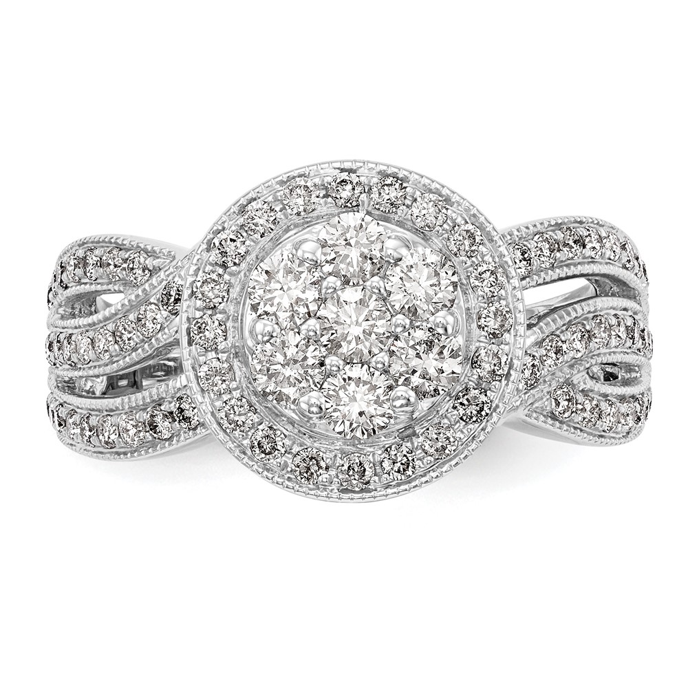 14k White Gold 1 carat Lab Grown Diamond VS/SI+ G+ Complete Cluster Engagement Ring
