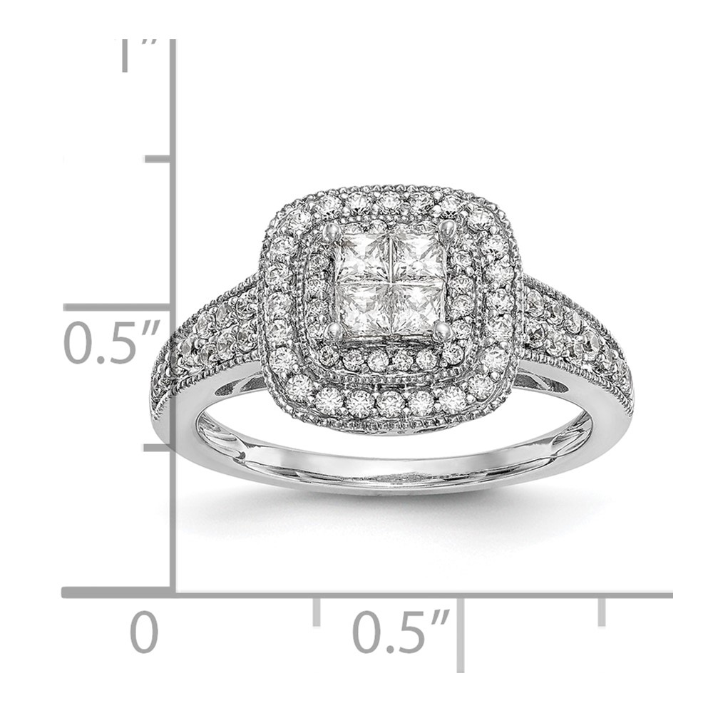 14K White Gold Square Halo Cluster 5/8 carat Princess/Round Diamond Complete Engagement Ring