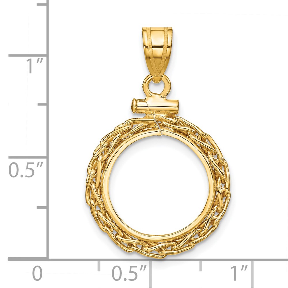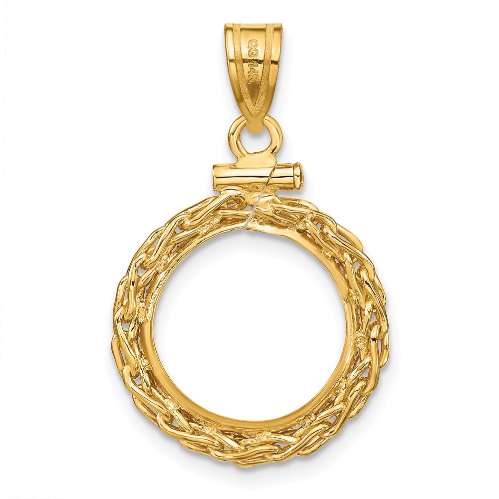 Wideband Distinguished Coin Jewelry 14k Polished and Diamond-cut 15.5mm Prong Coin Bezel Pendant