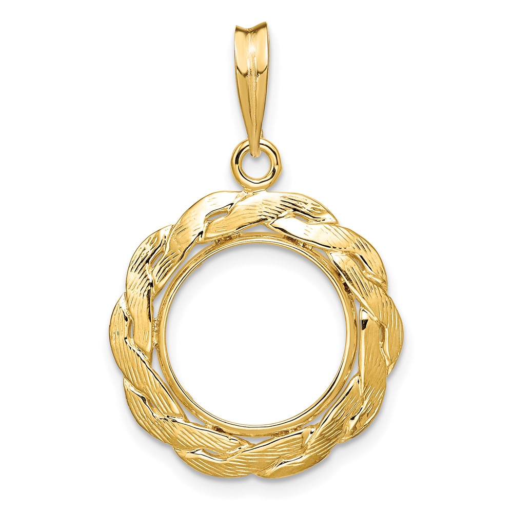Wideband Distinguished Coin Jewelry 10k Polished and Beaded 22.0mm x 1.9mm Screw Top Coin Bezel Pendant