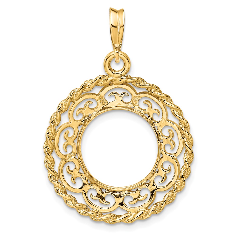 14ky Rope Edge with Scroll Design Prong Coin Bezel Pendant