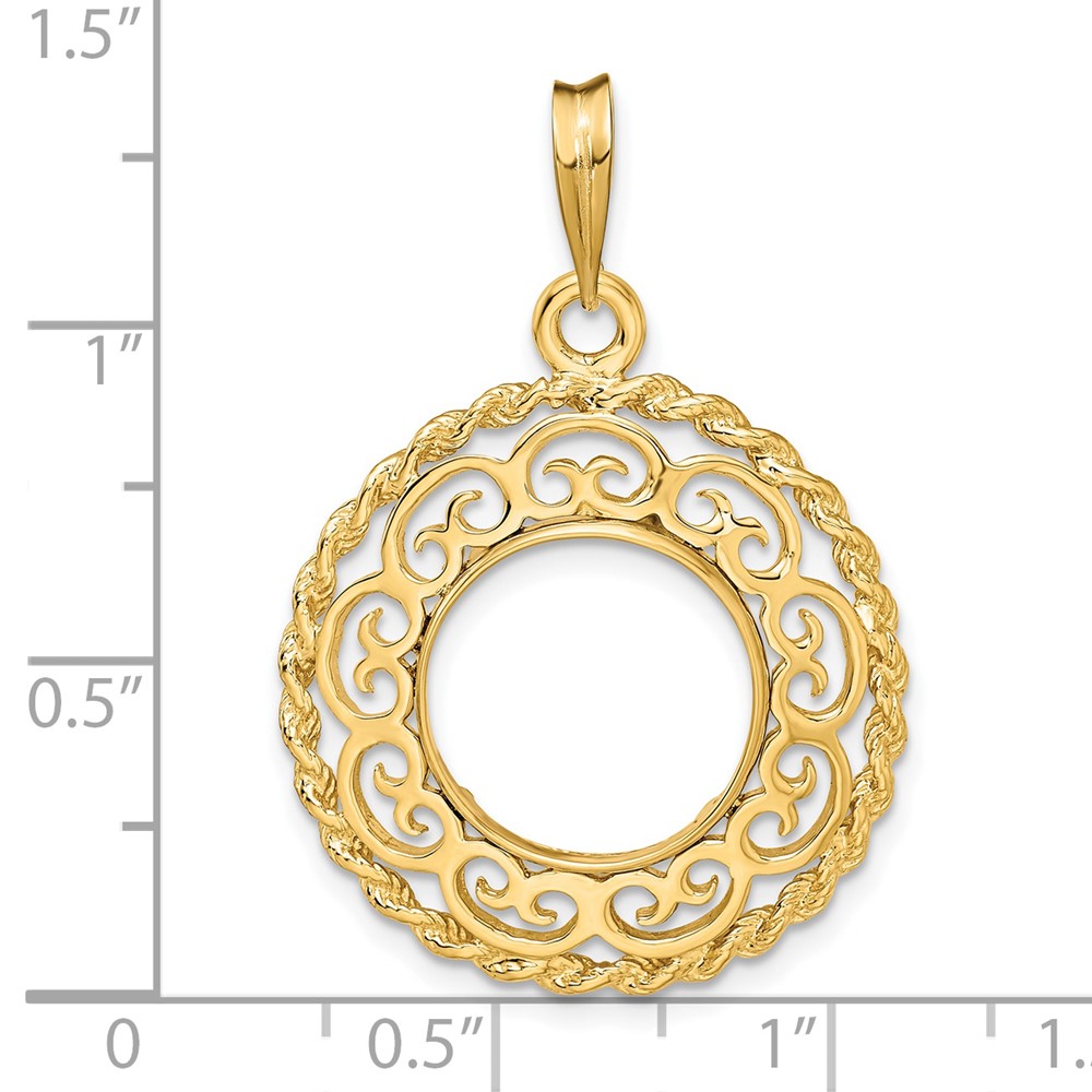 Wideband Distinguished Coin Jewelry 14k Polished Thin Fancy Filigree Top 16.5mm Prong Coin Bezel Pendant