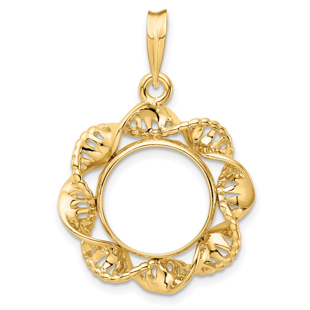 14ky Fancy Twisted Ribbon Prong Coin Bezel Pendant