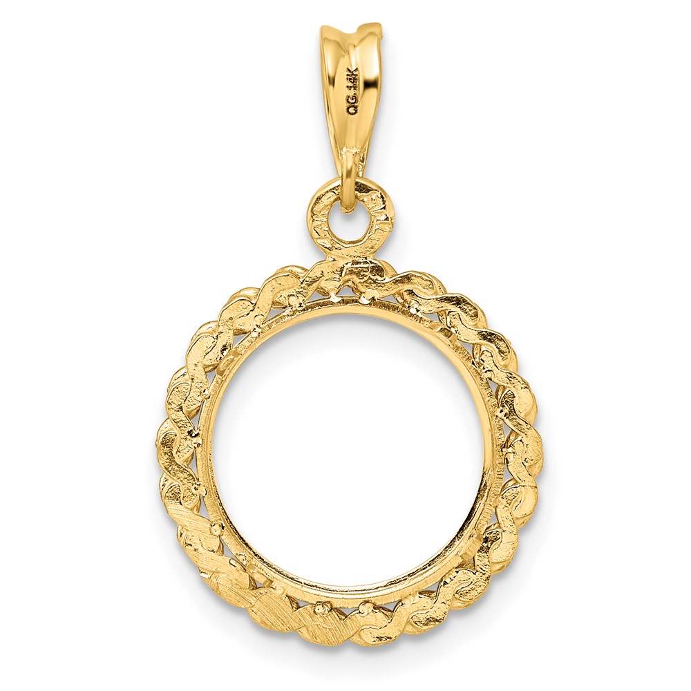 Wideband Distinguished Coin Jewelry 14k Polished and Diamond-cut 20.2mm Prong Coin Bezel Pendant