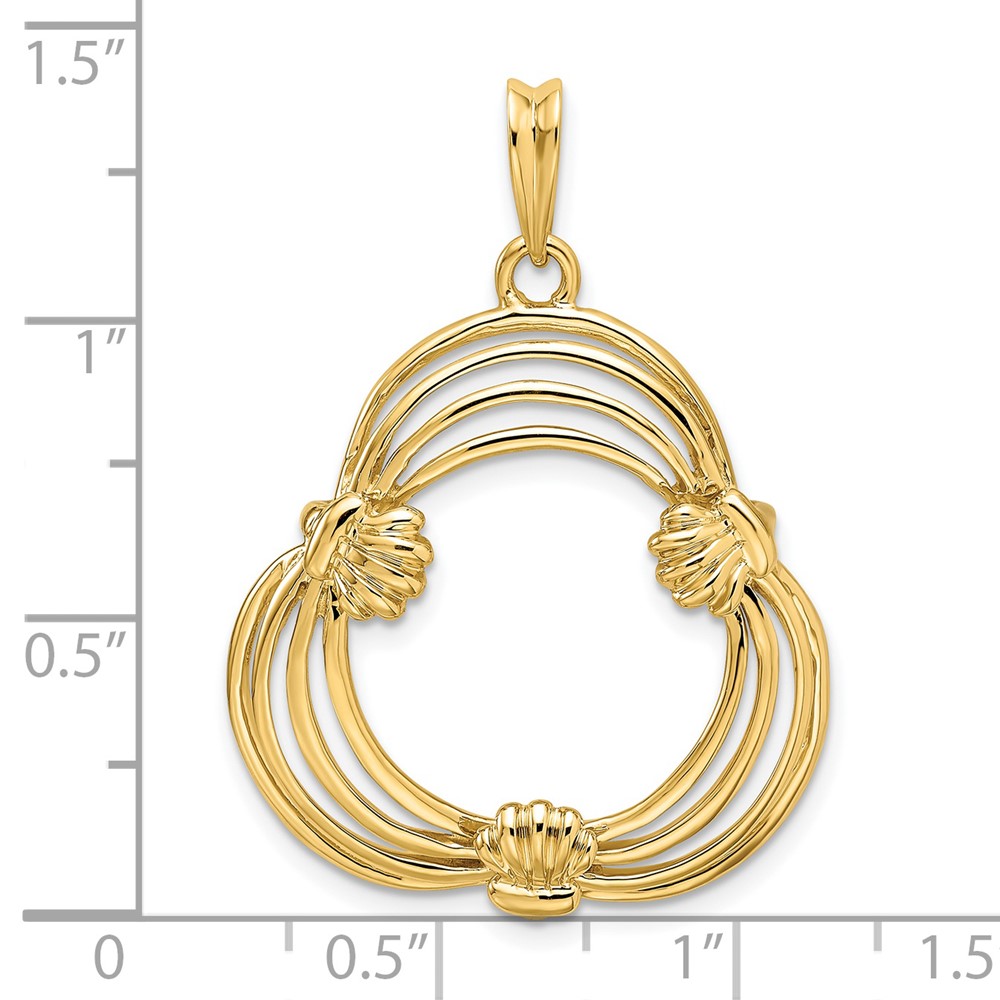 Wideband Distinguished Coin Jewelry 14k Polished Triple Wire 16.5mm Shell Prong Coin Bezel Pendant
