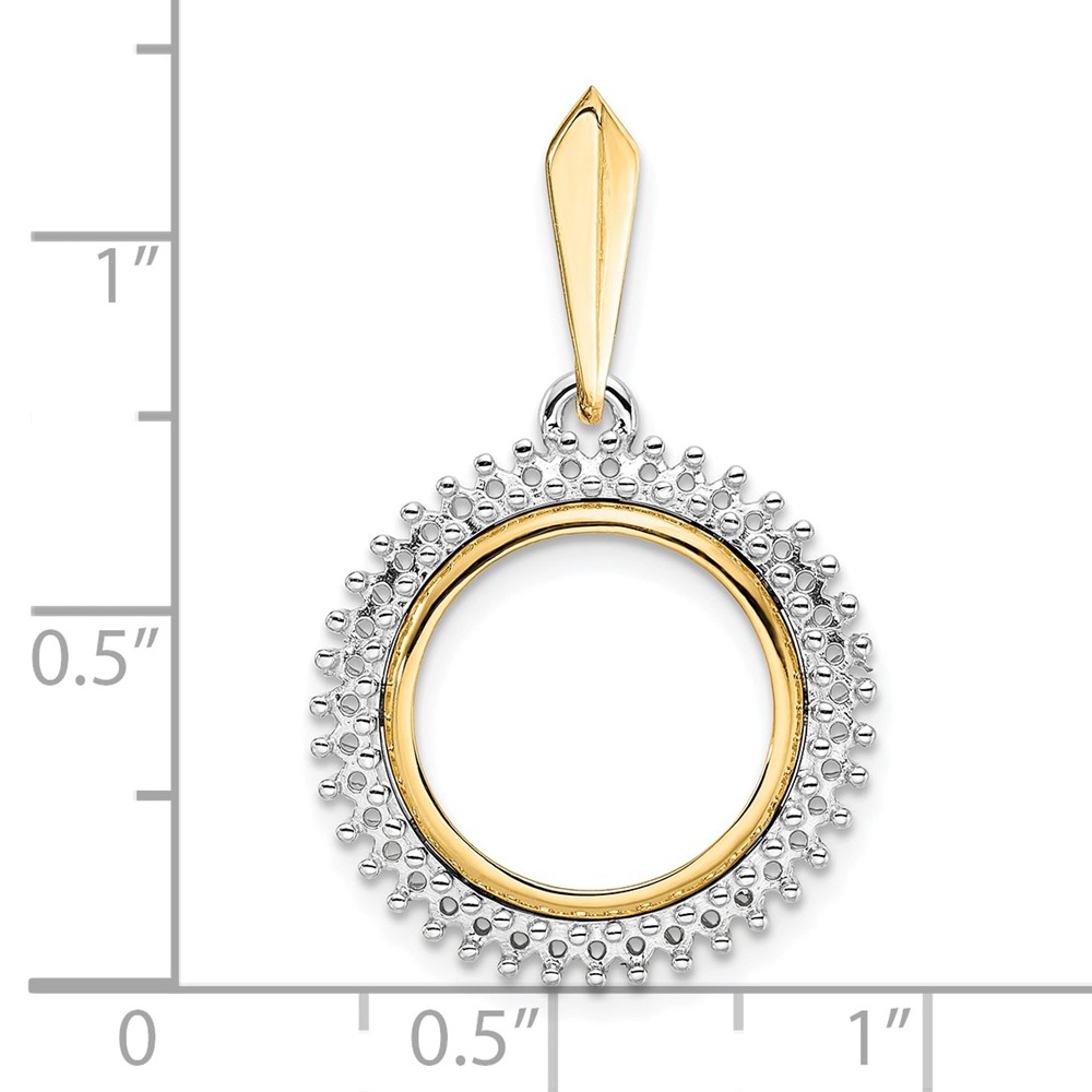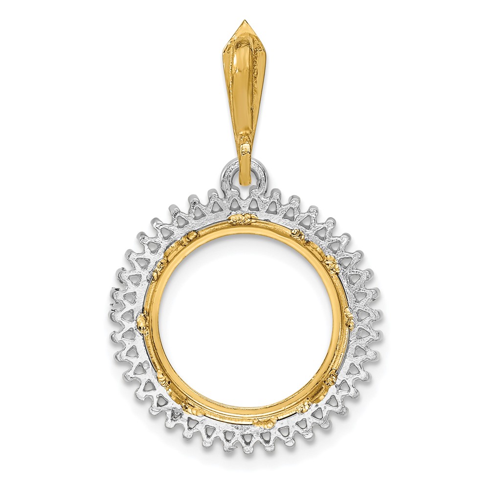 14k Two-tone Diamond Circle Prong Coin Bezel Pendant Mounting