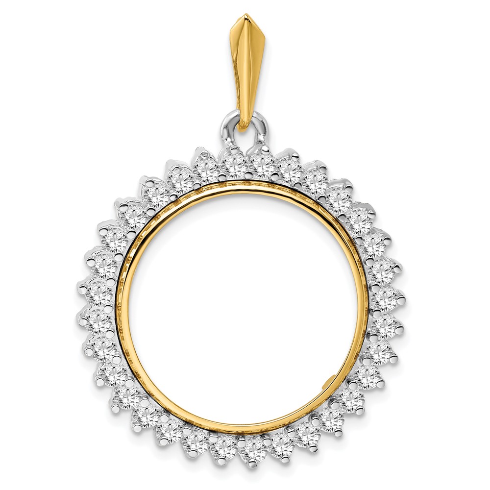 14k Two-tone Diamond Circle Prong Coin Bezel Pendant