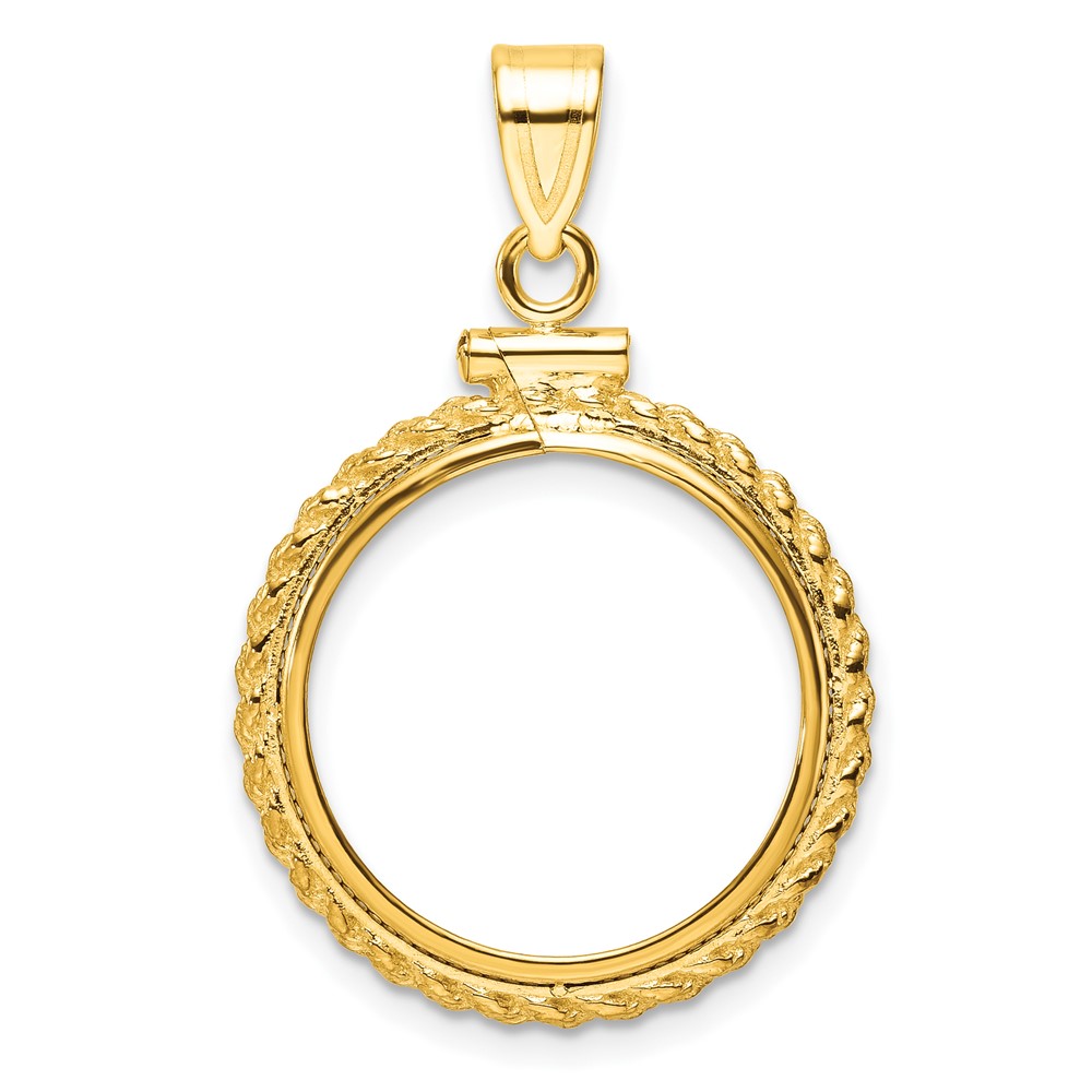 14ky Casted Rope Screw Top Coin Bezel Pendant