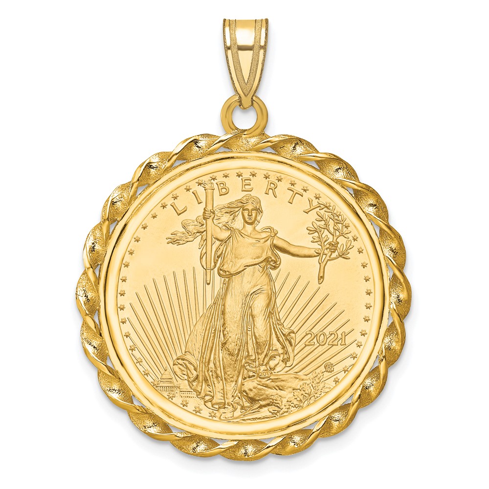 Wideband Distinguished Coin Jewelry 10k Polished with Casted Rope Mounted 1oz American Eagle Prong Coin Bezel Pendant