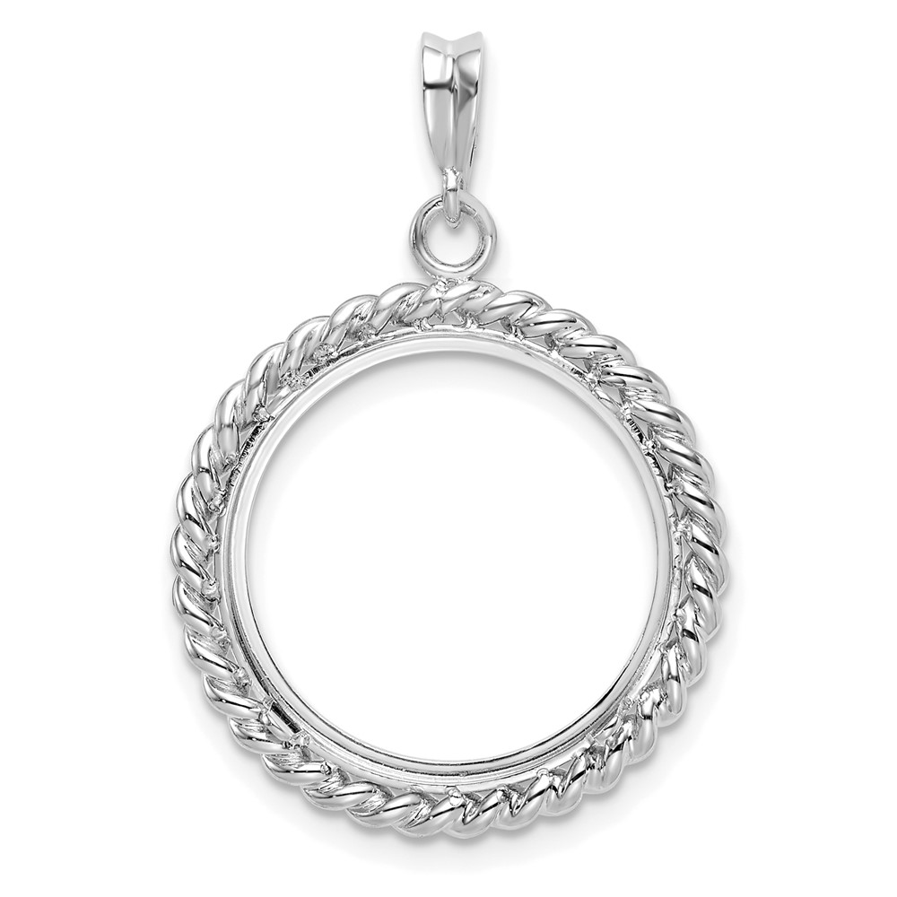 14k White 18mm Twisted Wire Prong Coin Bezel Pendant