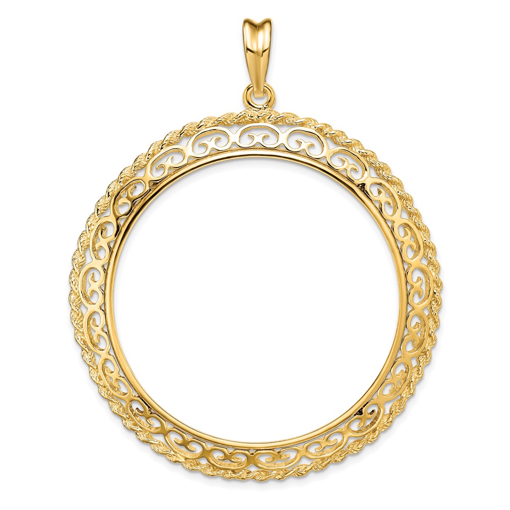 10ky Rope Edge w/ Scroll Design 39.5mm Prong Coin Bezel Pendant
