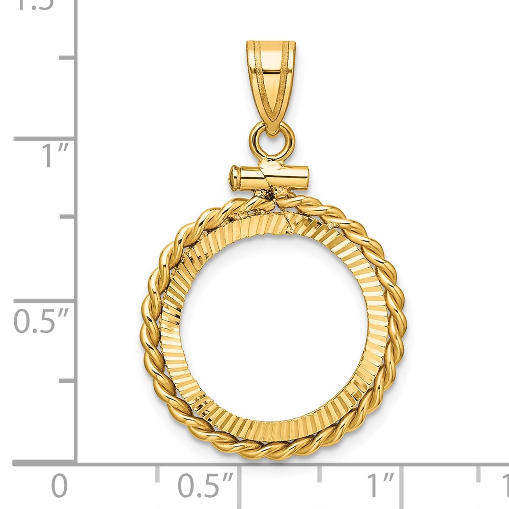 Wideband Distinguished Coin Jewelry 14k Polished Twisted Wire and Diamond-cut 16.5mm x 1.35mm Screw Top Coin Bezel Pendant