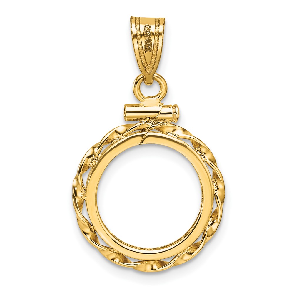 Wideband Distinguished Coin Jewelry 14k Polished Hand Twisted Ribbon and Diamond-cut 13.0mm x 1.1mm Screw Top Coin Bezel Pendant
